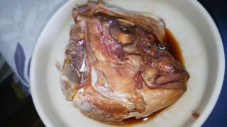 鯛の頭の炊いたのをチンしていただいた。