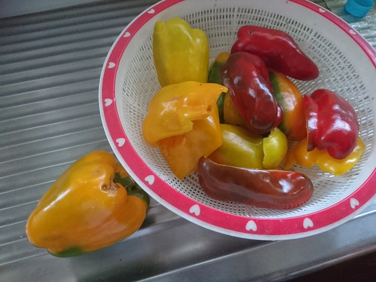 流しのところにカラフルなピーマンが切られていました。