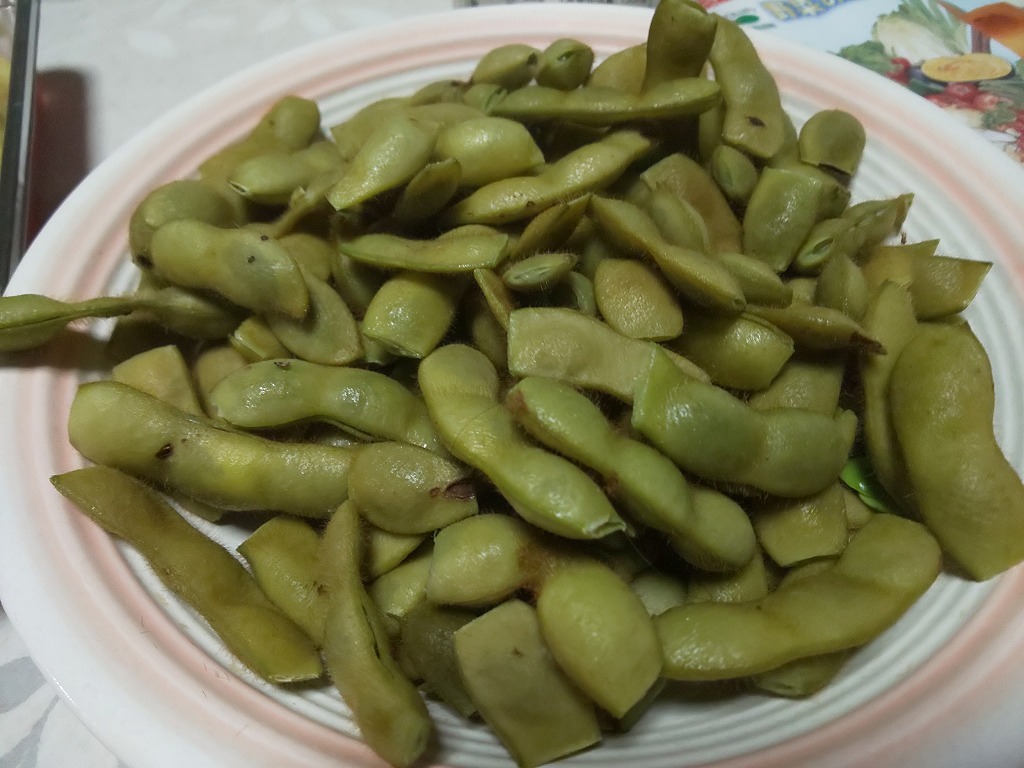 こちらは親戚のおばさんから貰った枝豆を湯がきました。