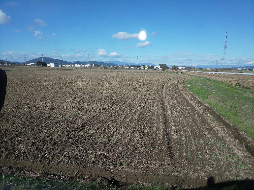 来年実る大麦が撒かれて、青い芽が出ててきています。