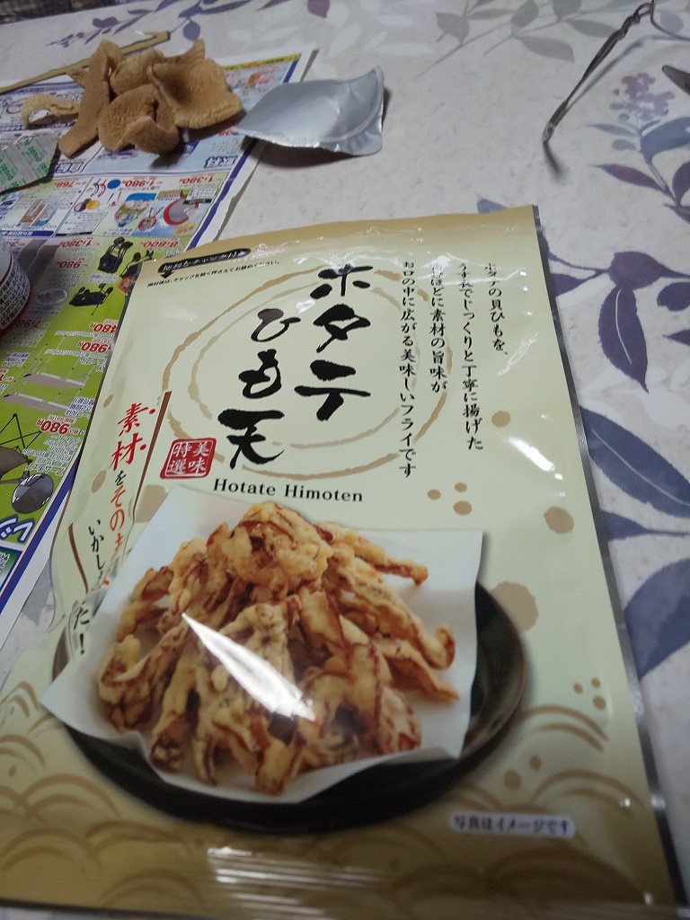 先に出てきた違うパッケージのホタテのひも天は容量が倍以上違っていた。