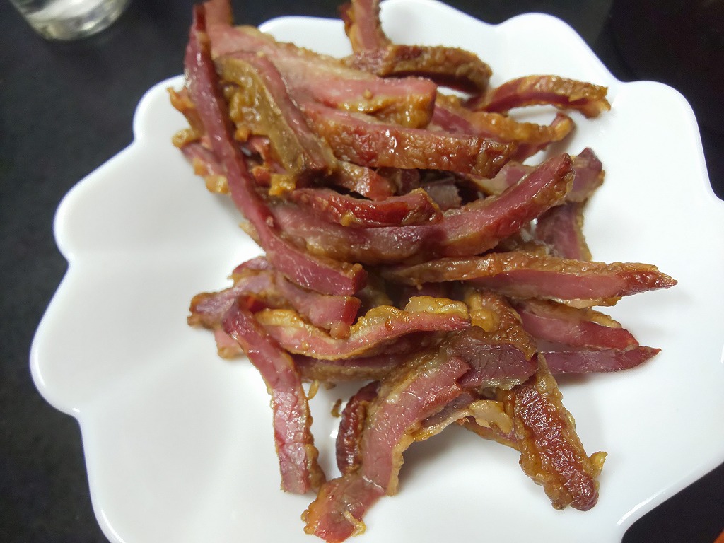 夕食に牛肉の燻製が出てきました